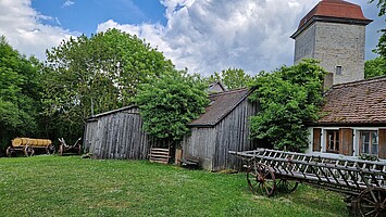 Die Route führt vorbei am Altmühlsee und weiter in das Nussdorf Sammenheim. Dort angekommen, dürfen wir in der Manufaktur „gelbe Bürg“ so einiges über die wunderbare fränkische Walnuss erfahren und von den erschiedensten Walnussprodukten eine Kostprobe nehmen. Weiter radeln wir zum Klingenweiher bei Wassertrüdingen und auf dem Fränkischen Wasserradweg zurück nach Triesdorf, wo wir zum Abschluss der Tour einkehren.